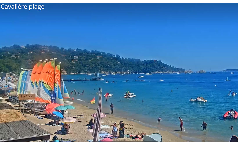 Plage surveillée de mai à septembre. Poste de secours. Long ruban de sable fin, bordée de pins, la plage de Cavalière au Lavandou est le lieu idéal pour toutes les activités sportives et nautiques en famille: surf, badminton, pédalos, parachute ascensionnel, plongée, ski nautique, jet-ski, catamaran. Parking le long de la plage. Marché provençal le lundi matin de fin Mai à fin septembre. Plage avec accès pour les personnes à mobilité réduite (PMR). Plage interdite aux chiens.